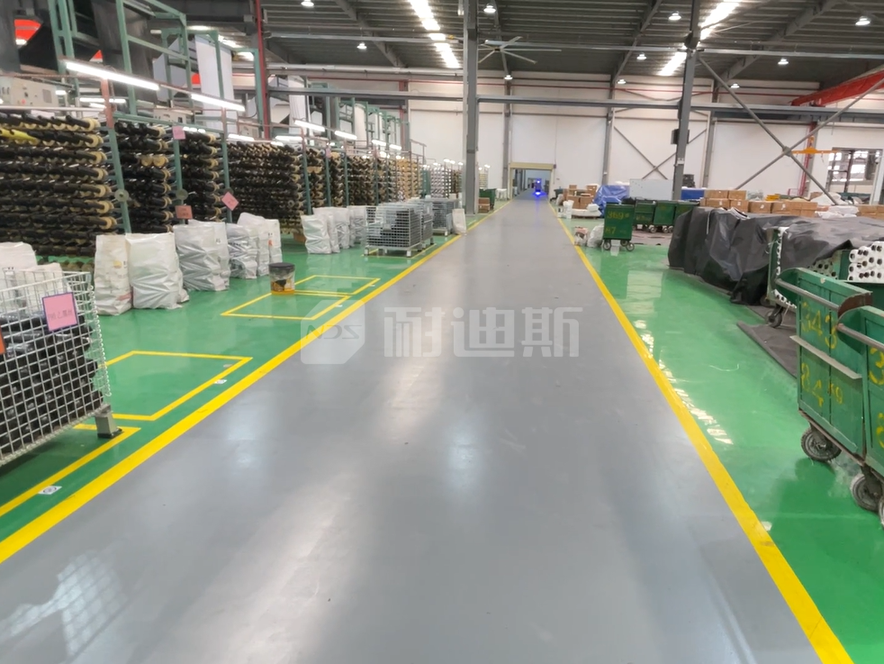 这套地坪解决方案的精妙之处,在于其"场景适配"的深层逻辑。两种地坪材料的协同使用,既满足了智能化生产的刚性需求,又符合现代化工厂标准。